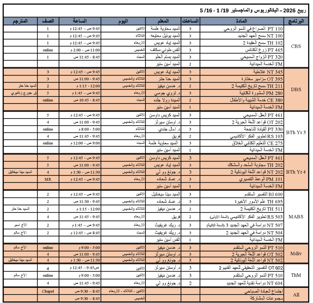 يبدأ التسجيل عبر إيميل الأخت كارولين من يوم ٣/ ١ وحتى ١٥/ ١ بنعمة الرب carolineta@jets.edu : يمكنكم تحميل الجدول